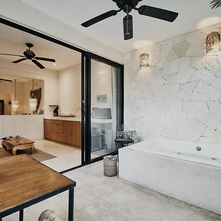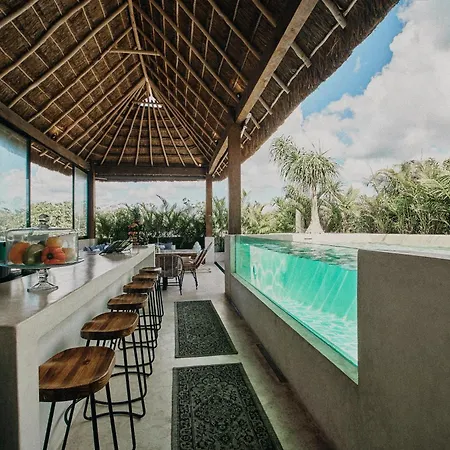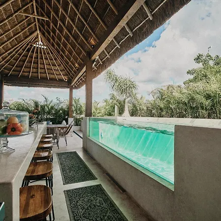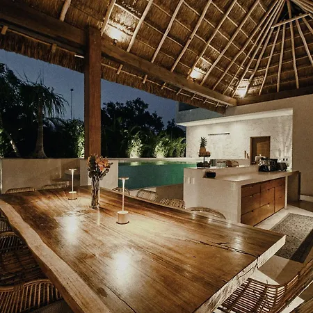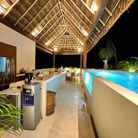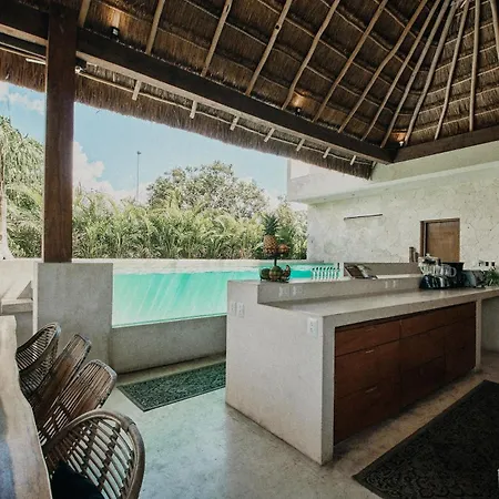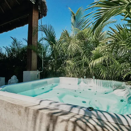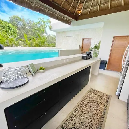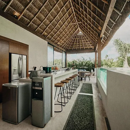 Located about a 20-minute walk from Kukulkan Avenue, the 4-bedroom Villa 240M2 - 16 Persons - 6 Rooms - 2 Swimming Pool - 3 Jacuzzis Tulum entices guests to relax in a Jacuzzi.